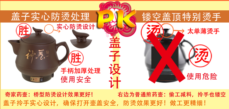 奇家煎药壶解决了买家轻松煎药,加大的陶晶发热盘,这就确保了受热均匀,使熬煮更加充分释放草药药性,关于煎药原理:当内胆水位线低于电药壶发热体时,电药壶即可自动蜂鸣,不是水开就会蜂鸣提示哦!