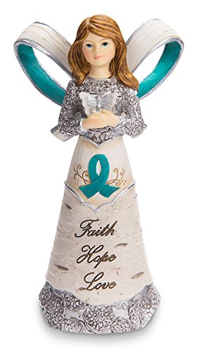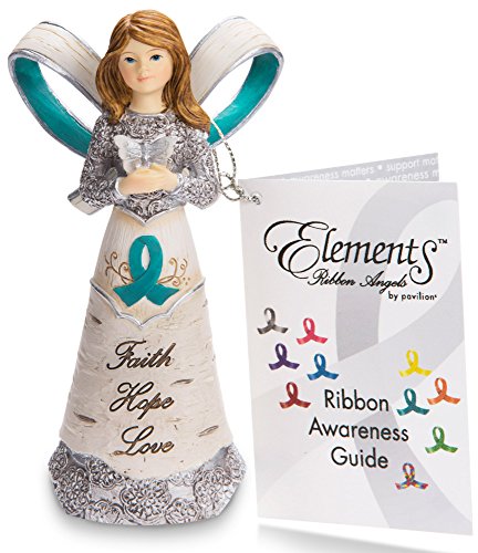 Pavilion Gift Company 82388 Ribbon Awareness Angel Figurine, 5", Turquoise/Teal