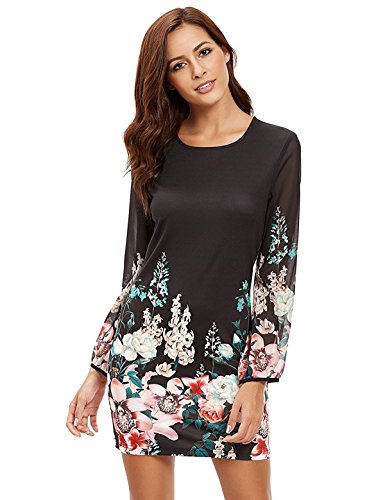 This sweet chiffon floral dress features long sleeves and invisiable back zipper.(NOTE: Some styles have no zip back) . Slightly blurred floral print is carried on throughout the front hem of the bodice for a cuty finish with which the details definitely enhance its overall appeal.