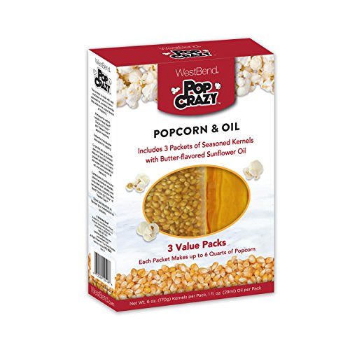 - Theater-style popcorn & oil Pouches are perfectly pre-measured to use in West bend stir crazy & Theater crazy machines