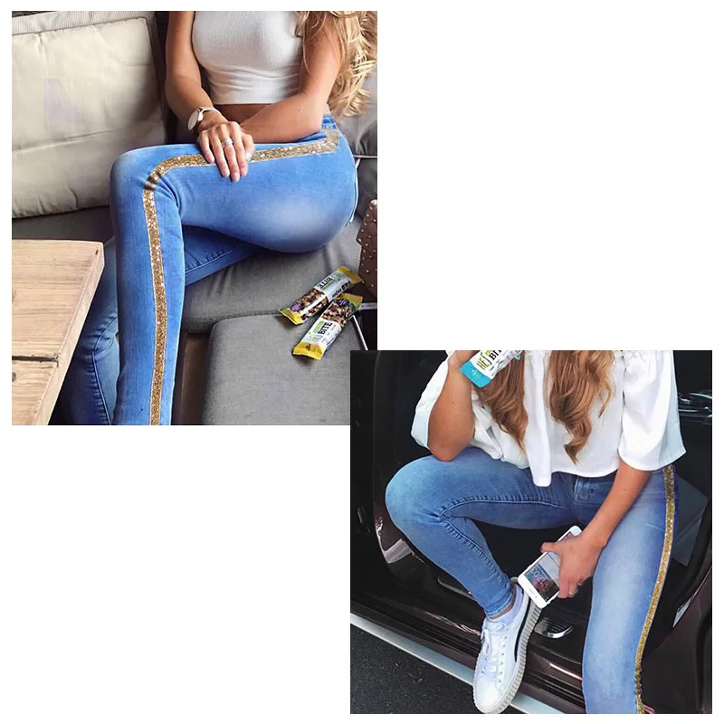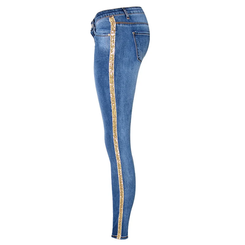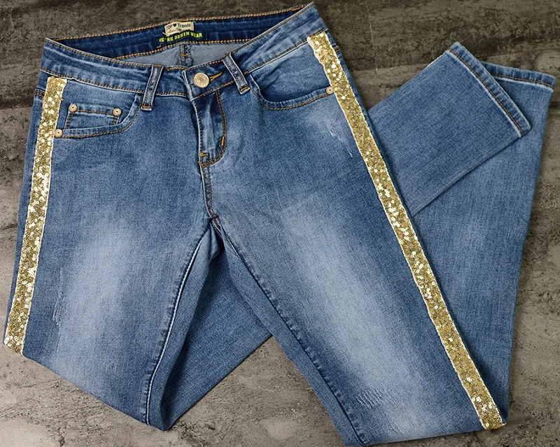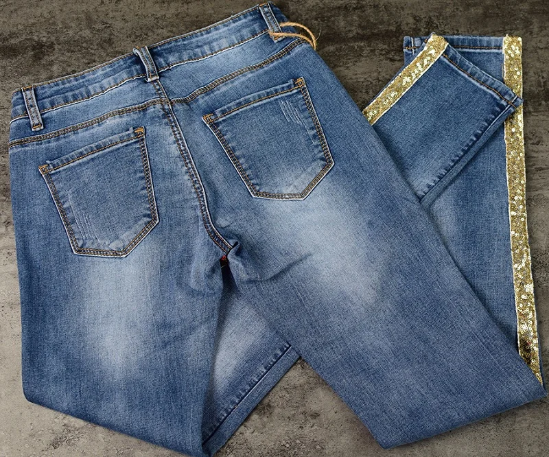 Description 2:package hips sexy skinny pecil jeans gold sequins jeans feminino