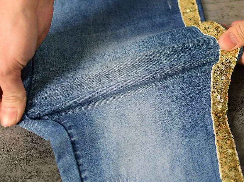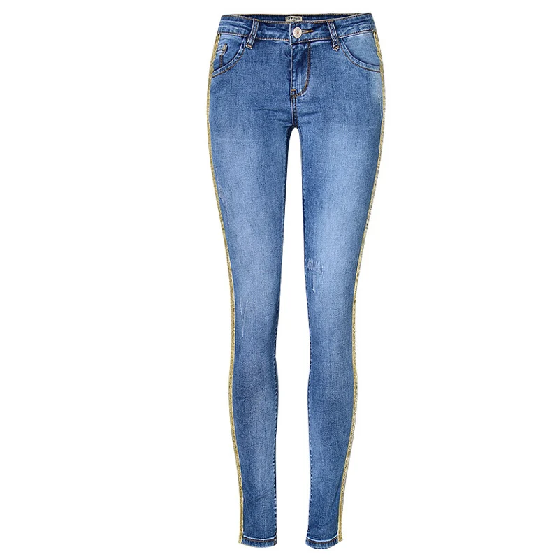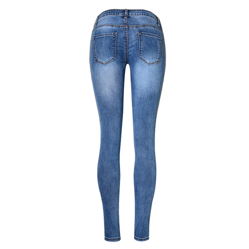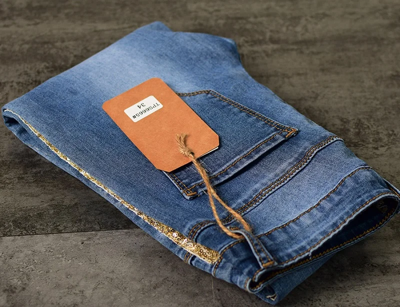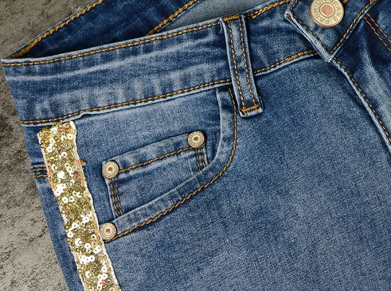 Description 1:women low waist Slim double-sided metal embroider beads elastic jeans