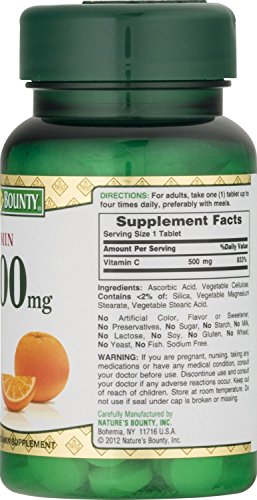 Studio : Nature's Bounty Publisher : Nature's Bounty Binding : Health and Beauty Product Description Nature's Bounty C-500 Pure Vitamin C Tablets provide plenty of vitamin C, a powerful antioxidant that supports immune health. Vitamin C As one of our most popular supplements for good health, vitamin C provides superior antioxidant support and plays an important role in supporting immune function.* Vitamin C is also beneficial for the joints, heart, blood vessels, gums, skin, hair, and nails.* 0