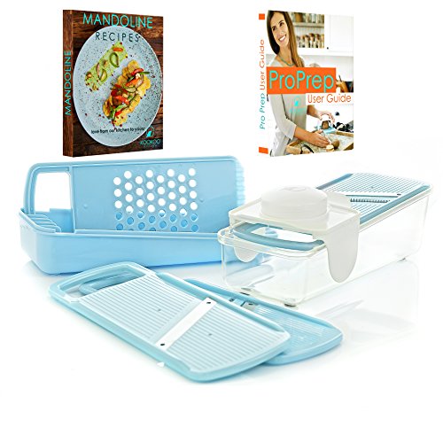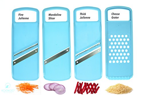 ProPrep 4-In-1 Multi-Function Mandoline Slicer, Julienne & Grater By KooKoo Kitchen - Vegetable Slice Thick & Thin Julienne Stainless Steel Blades - FDA Approved Plastic - Healthy Eating Recipes