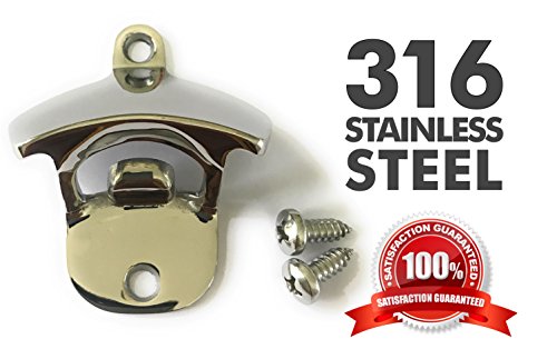 -. Feature : The ONLY 316 stainless steel bottle opener on Amazon. Others use inferior grades of stainless that WILL rust over time. / 100% Satisfaction GUARANTEED! / SALT WATER APPROVED! We built these 316 stainless steel bottle openers to withstand the rigors of being mounted on our saltwater fishing boats. / Won't leave RUST streaks on your patio, walls or gunnels! / DUAL mounting options - standard wall mount or vertical / upside down for under-bar or overhead mounting!