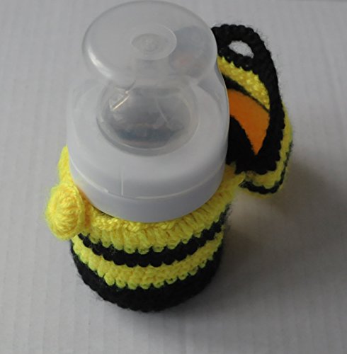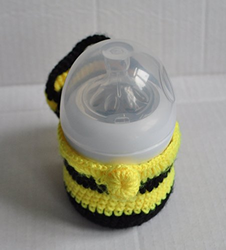 HANDMADE STRIPED BABY BOTTLE COVER FOR 125ML - YELLOW AND BLACK
