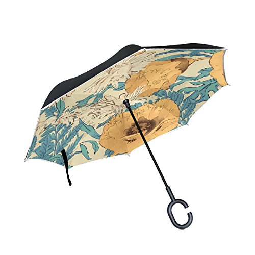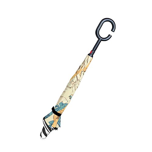 (AHOMY)/Accessories/Umbrellas/DIRECT FROM USA/AHOMY Watercolor Flower Leaf Large Double Layer Inverted Umbrella Windproof UV Protection With ...