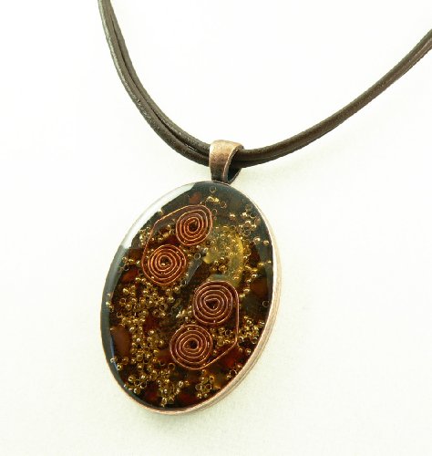 -. Title : Orgone Energy Large Oval Necklace in Copper with Carnelian