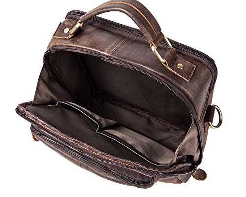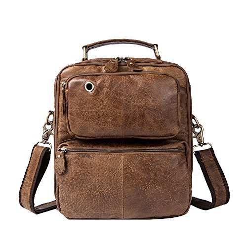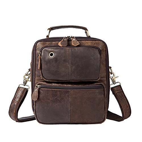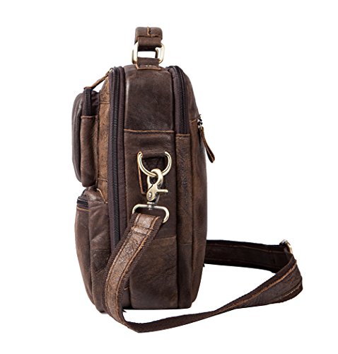 Features: Color: Coffee/Brown Style: Fashion and casual Gender: Men and Teen boy Material: Leather Size: 22.5cm(length)*6cm(thickness)*27cm(height) / 8.8*2.3*10.6inch Usage: Shoulder bag/ Crossbody bag/handbag for travel, work or other outdoor activities