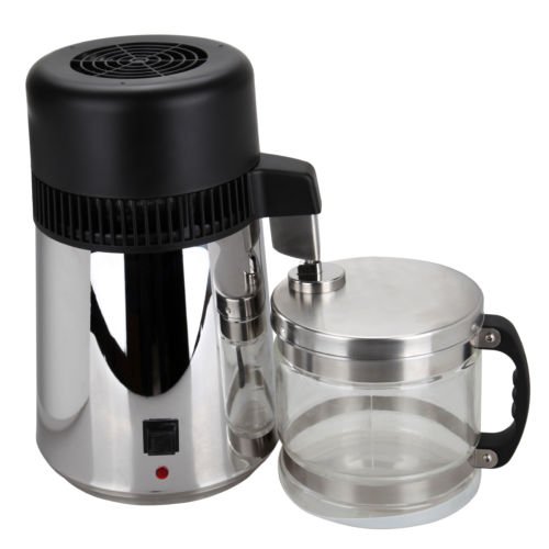 -. Feature : Easy to use,simply plug in the power supply and start to work,no installation required / Premium 304 stainless steel shell,inner chamber,filter,fan blade and thicken glass collection container for maximum strength and durability / Thermostatically controlled system help to shut-off at the end of each cycle,it also will power off automatically when the temperature is over 160 degrees / Effectively remove most impurities,such as pollutant,bacteria,viruse,inorganic chemical and toxin,making the water purer for drinking / This water distiller is perfect for individuals, doctors, dentists, laboratories and businesses.