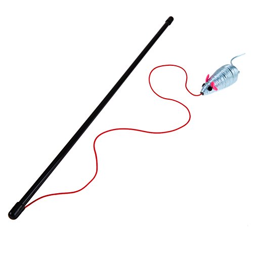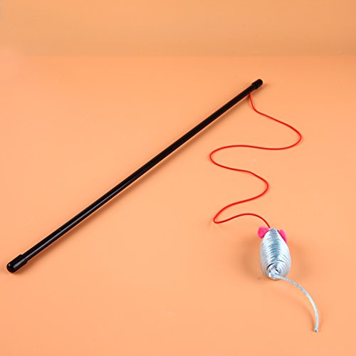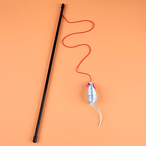 -. Feature : Material: Plush + Plastic / Artificial mouse toy and bell sound to quickly attract cat's attention / This toy can train a cat's nature, make your cat move quickly / It can improve the relationship between you and your pet. / Stick Length: approx. 47cm/18.5in