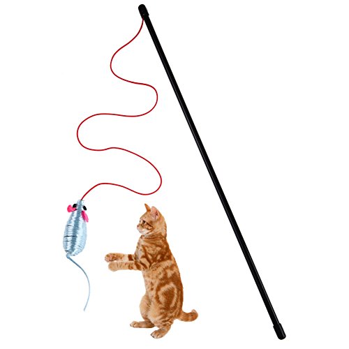 -. Title : Domybest Cat Teaser Toy, Interactive Kitten Cat Teaser Rod with Artificial Blue Mouse Toy Plush Catch Toys