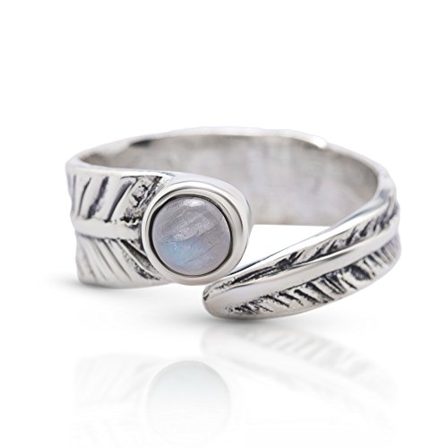 -. Title : Moonstone Adjustable Tribal Feather Ring 925 Sterling Silver US Size 6 7 8 9