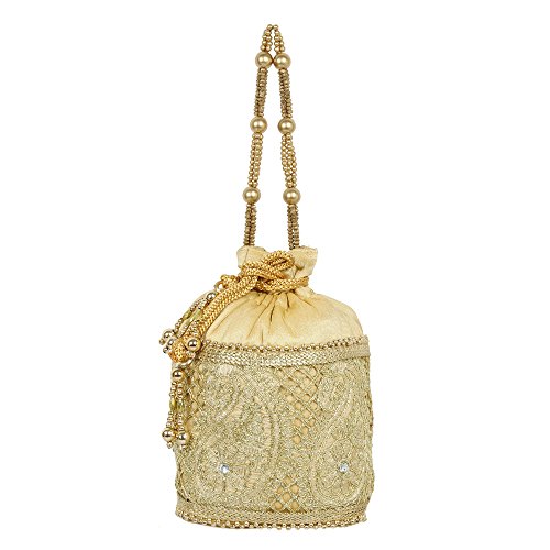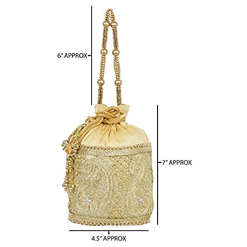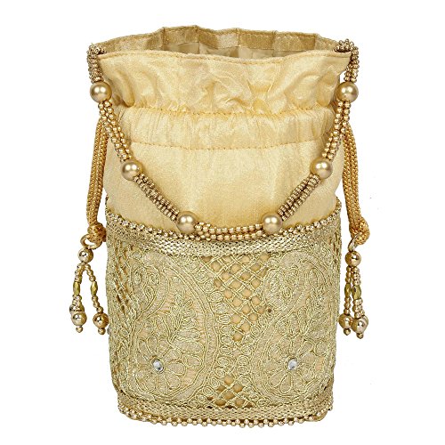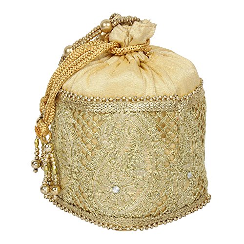 (Purse Collection)/Accessories/Handbags/DIRECT FROM USA/Purse Collection Gold Colour Beautiful Drawstring Potli With Embroidery Work Purse For Womens