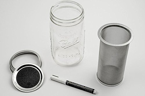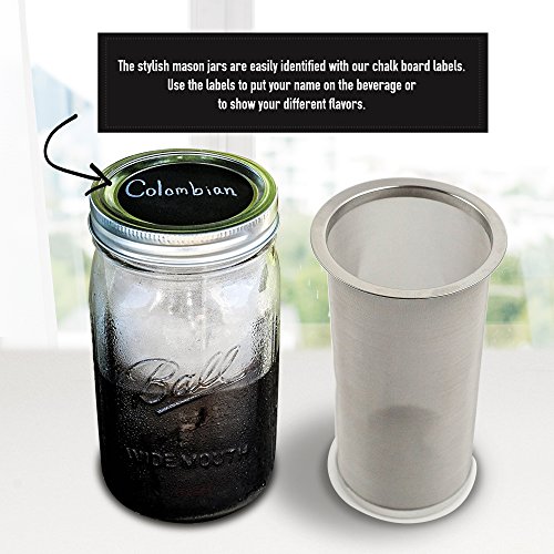Cold Brew Coffee Maker by The Cold Brew Company for Iced Coffee and Tea– Stainless Steel Filter – Wide Mouth Mason Jar – Chalk Board Labels