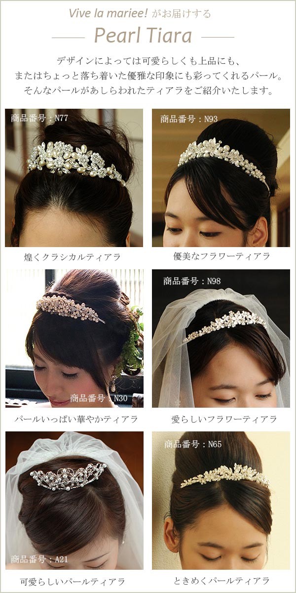 ⇒ パール&ビーズのフラワーキュートなティアラ [N98] ⇒ パール&クリスタルの清楚なティアラ [N65] ⇒ コーディネートでおすすめのウエディングベール [V61] |