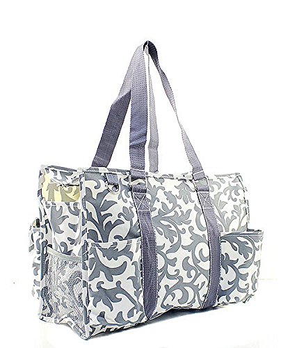 -. Title : Ngil Gray Damask Large Utility Tote