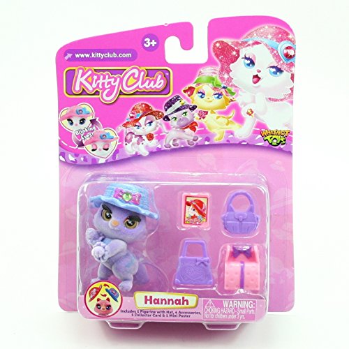 -. Binding : Toy -. Brand : Kitty Club -. EAN : 0655257547626 -. Feature : HANNAH * Kitty Club * 2016 Whatnot Toys Single Figurine & Accessories Pack / Each kitty has their own unique style including fashion hats that are interchangeable between characters / 14 different characters to collect. Each sold separately. 4 Accessories with each figurine. / Kitties are flocked and have real blinking eyes! / Ages 3 and up. From Whatnot Toys -. IsAdultProduct : 0 -. Label : Whatnot Toys -. Manufacturer : Whatnot Toys -. MPN : 2410B -. PackageQuantity : 1 -. PartNumber : 2410B -. ProductGroup : Toy -. ProductTypeName : TOYS_AND_GAMES -. Publisher : Whatnot Toys -. Studio : Whatnot Toys -. Title : HANNAH * Kitty Club * 2016 Whatnot Toys Single Figurine & Accessories Pack -. UPC : 655257547626