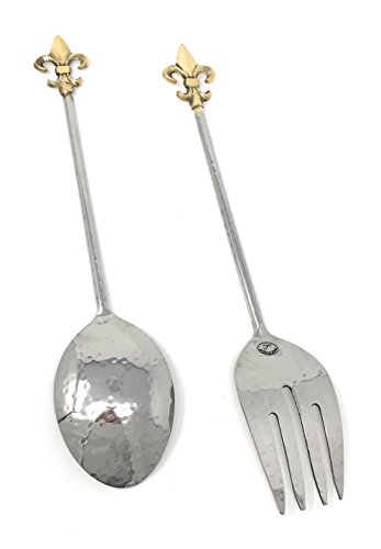 Studio : India Handicrafts Inc Publisher : India Handicrafts Inc Product Description Fleur De Lis Hammered Aluminum Servers, Set of 2, by India Handicrafts. The set of 2, includes a large fork and spoon. Can be used for both formal and informal events. Made of highly polished sand cast aluminum with gold gilded Fleur De Lis ends. Each Measures Approximately: 2.5" W x 13" L. Made in India. 0