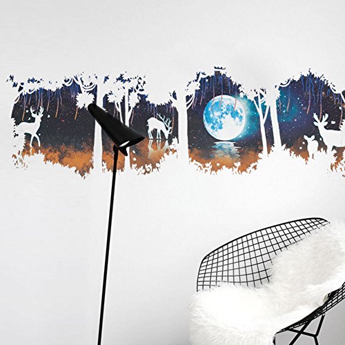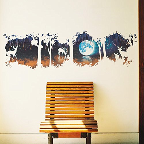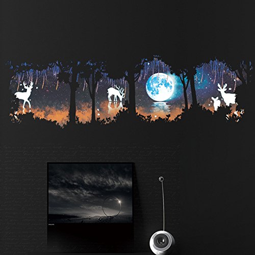 Amaonm Removable DIY Creative Hazy Moonlight Green Moon Giant Tree Wall Decals Kids room Wall Sticker Murals Animals Deer Wall art Decor for Living room Offices Bedroom Background Decorations