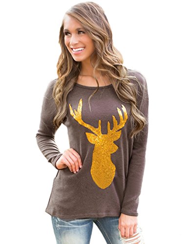 -. Title : OURS Women Long Sleeve Christmas Reindeer P.R.Inted Sweatshirt Blouse T-shirt Tops