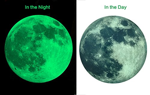 After irradiation of natural/artificial light in the night or in the dark you can see the moon in the luminous wall stickers