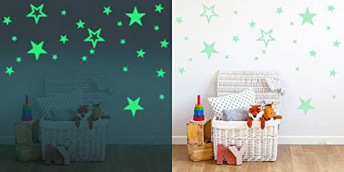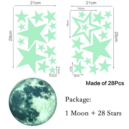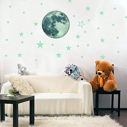 Toeoe 30cm Glow in the Dark Moon Wall Sticker Decorative Removable Night Decal, Luminous Stars Skin Wall Stickers Gifts for Kids Bedroom Living room Children's Room Ceiling Nursery Room - Moon Stars