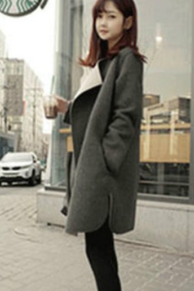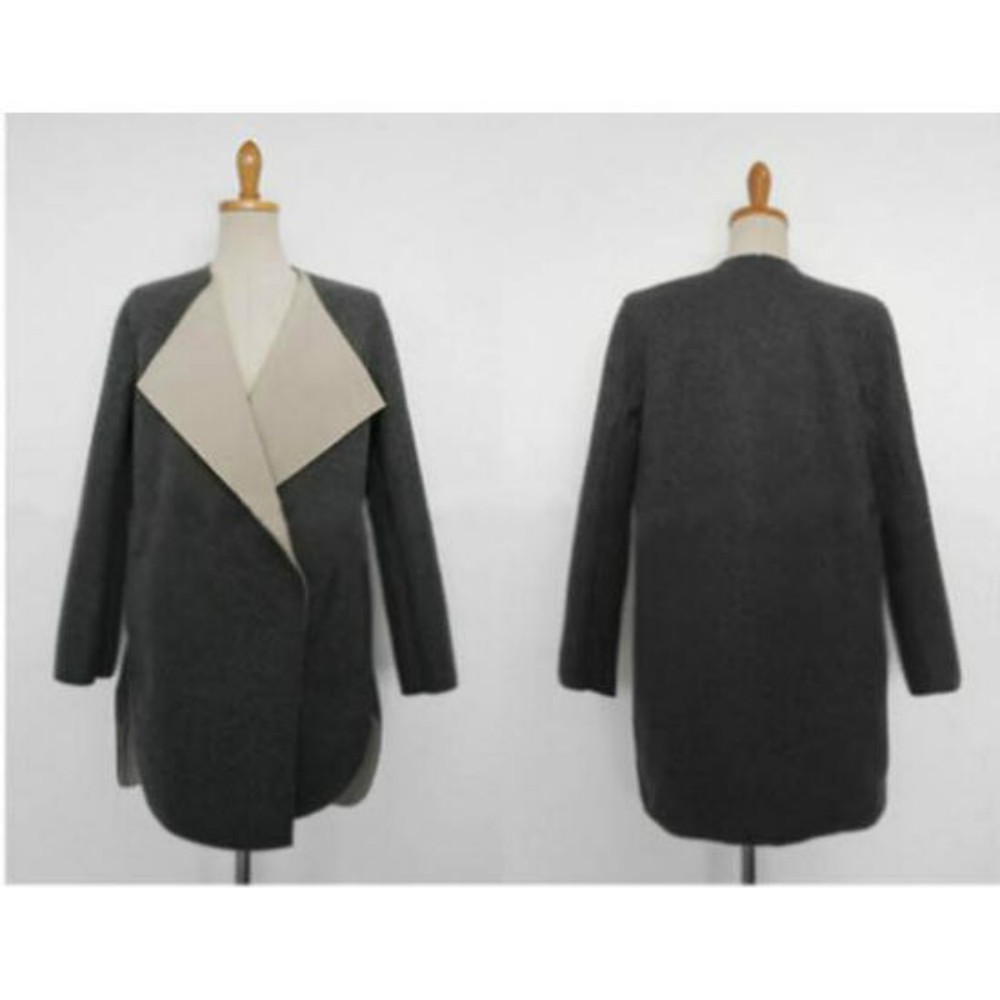 オフィス・通勤☆シンプル ウール ダブルフェイス ノーカラーコート