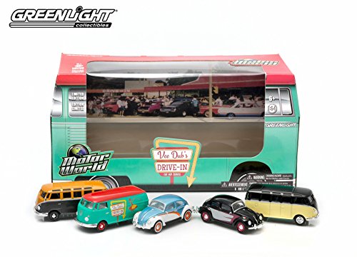 -. Title : '60's Vee Dub's Drive-In Restaurant Motor World ama 2014 Greenlight Collectibles 1:64 Scale Limited Edition Die-Cast 5 Vehicle Set (Includes 1 Volkswagen Panel Van, 2 Classic Beetles & 2 VW Samba Bus Vehicles)