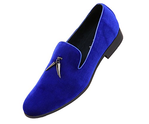 -. Feature : Amali Mens Velvet Smoking Slipper with Gun Metal Horn Tassels / Velvet Upper / Slip-On Loafer Dress Shoe / Non-Leather Outsole with Blocked Heel / Leather Lined