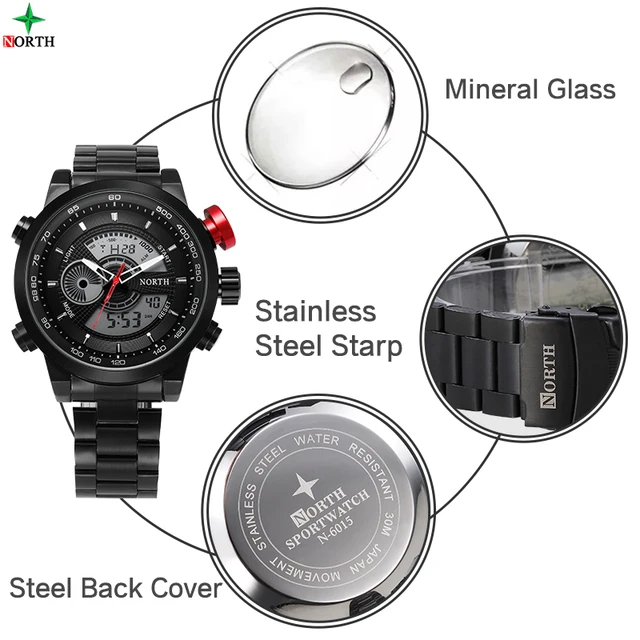 | [해외] 북미 럭셔리 브랜드 남성 아날로그 디지털 스포츠 시계 남성 육군 시계 남자 석영 시계 남성 시계 Relogio Masculin |