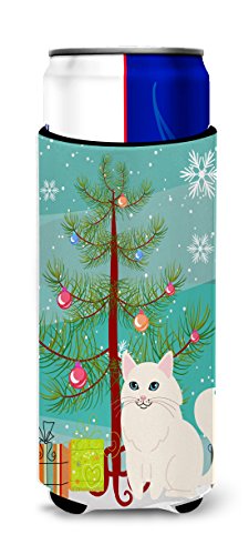 Caroline's Treasures Turkish Angora Cat Merry Christmas Tree Michelob Ultra Hugger For Slim Cans, Slim Can, Multicolor