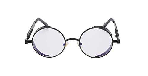 Steampunk Fashion Sunglasses NYC; Clear UV 400 Lens Protection & Black Frame; Retro Sunglasses; Vintage carved frame , spring design mirror leg , vintage 's circular frame , steam punk smell borders; *Sunglasses Case in a Fashionable color; Steampunk also refers to any of the artistic styles, clothing fashions, or subcultures, that have developed from the aesthetics of steampunk fiction, Victorian-era fiction, art nouveau design, and films from the mid-20th century.Feature