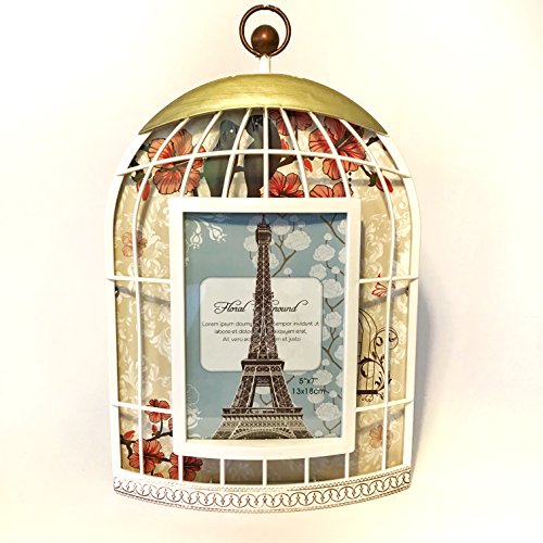 Decorative Collage Iron Metal Wall Hanging Picture Frame with Bird Cages - Made to Display 5 x 7 Inches Photo!