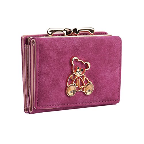 -. Title : Damara Womens Kiss-lock Metallic Bear Embossed Trifold Cards Wallet
