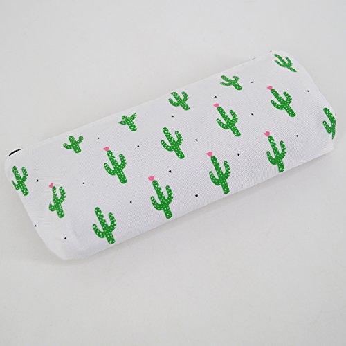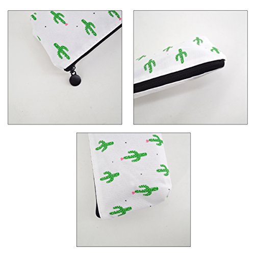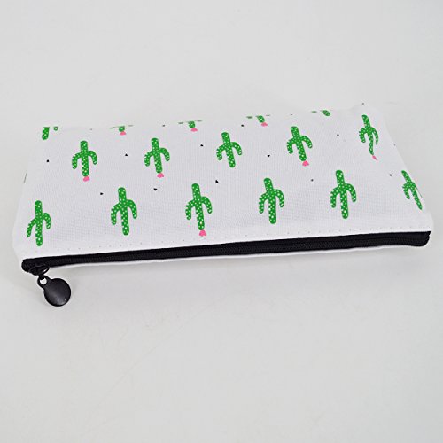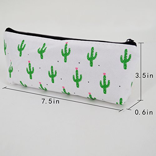 Clara Cute Cactus Pencil Bag Pastoral Canvas Pencil Case Floral Printing Pencil Holder Cosmetic Bag Makeup Pouch Coin Purse(03)