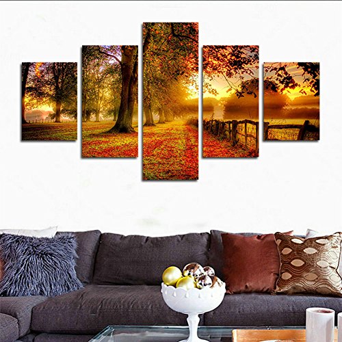 -. Title : H.COZY 5 Piece High-definition printed forest pictures of the sun canvas interior painting room art poster wall room (No Frame) Unframed far180 50 inch x30 inch
