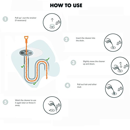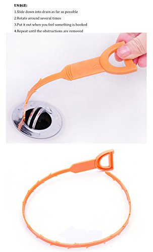 Drain&Clogged Hair Removal Cleaner 23.6 Inch ABS Plastic Sink Pipeline Hook for Bathroom Kitchen Toilet For One Use (Pack Of 5)