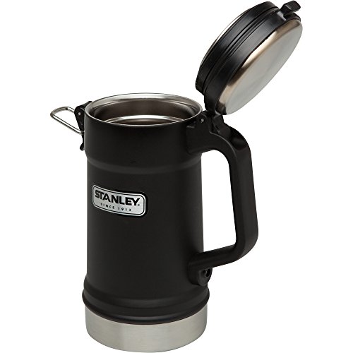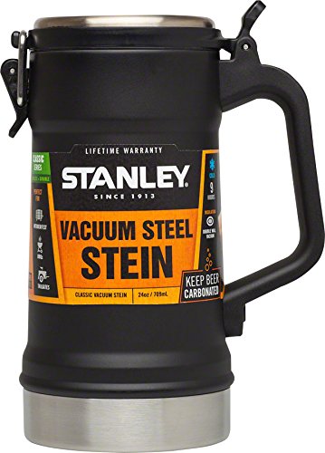 Studio : Stanley Publisher : Stanley Binding : Kitchen Product Description Designed like the classic vacuum bottles, Stanley introduces the Vacuum Stein. vacuum insulation. Latching lid keeps beer cold and carbonated longer. 18/8 Stainless Steel. Steel inner lid, no plastic contact to beer. Dishwasher safe. Material: Stainless Steel. Type: Alcohol. Capacity: 24. Insulated: Yes. 0