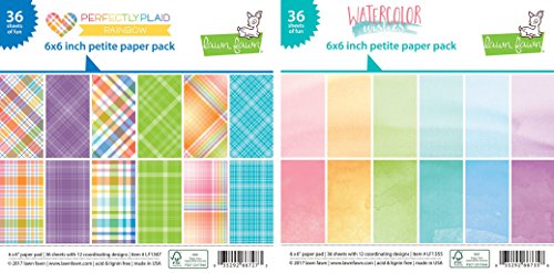 Lawn Fawn Petite Paper Pack 6x6 Inch Bundle - Perfectly Plaid Rainbow, Watercolor Wishes (Set of 2 Items)