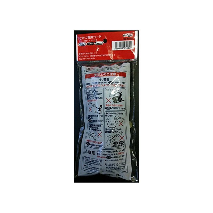 원본상품명: NICOH(ニコ?) こたつ?用コ?ド 『中間スイッチ付コ?ド』の交換用 7A 700Wまで L型器具用プラグ 耐トラッキングカバ?付き