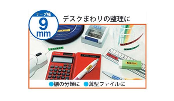 「ネームランド」用テープカートリッジです。デスクまわりの整理に使える9mm幅。