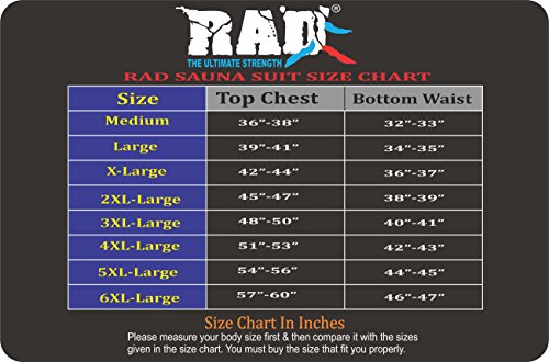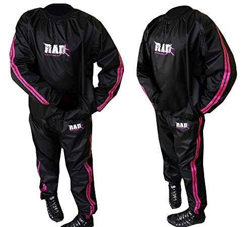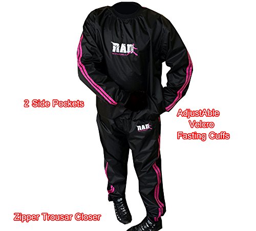 Studio : Rad International Inc. Publisher : Rad International Inc. Binding : Misc. Product Description Heavy Duty RAD Weight loss Sauna Suit looks just like a high-fashion sweat suit on the outside, but has a concealed unique EVA nylon material.Complete set includes pullover top and pants. Rugged elastic surrounds the cuffs, waist, waistline and ankles for unbelievable air retention and sauna action. Oversized fit provides top results. The RAD Weight loss Sauna Suit allows you to triple your weight loss by using your own body's natural heat to melt away unwanted fat and water weight.Once you put on the RAD Sauna Suit, all you have to do is move around and exercise to stimulate the body.Through perspiration, the body will naturally excrete unwanted pounds. RAD Sauna Suit works just like the expensive warm body-wrap treatments at the luxurious health spas.The RAD Sauna Suit will help you reduce your entire body weight, evenly eliminate cellulite, get rid of that unattractive stomach pouch, shrink those love handles,and improve muscle tone and definition all over.RAD Sauna Suit is an effective sweat aid which uses natural body heat generated from any type of low or intensive high-energy physical exercise to increase perspiration during your work out. This sweat excretion process through perspiration stimulates the entire body, thus helping to rid the body of excess water weight gain, and evenly melts away unwanted body fat!The RAD Weight loss Sauna Suit is designed as a unisex workout suit that will accommodate both men and women in a variety of comfortable sizes: M,L,XL,XXL,3XL,4XL,5XL,6XL. 0