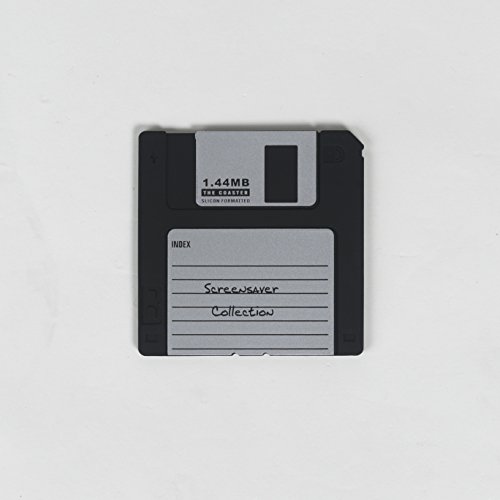 - Set of four multi-color, realistic, floppy disk coasters