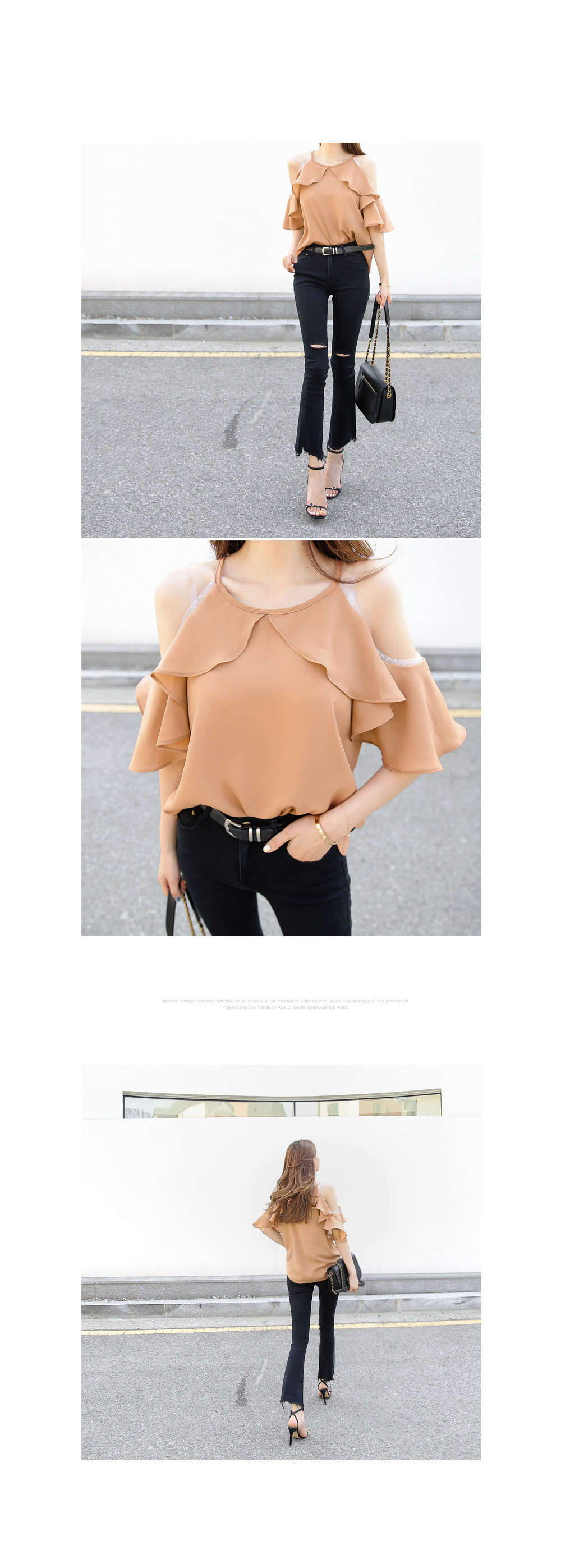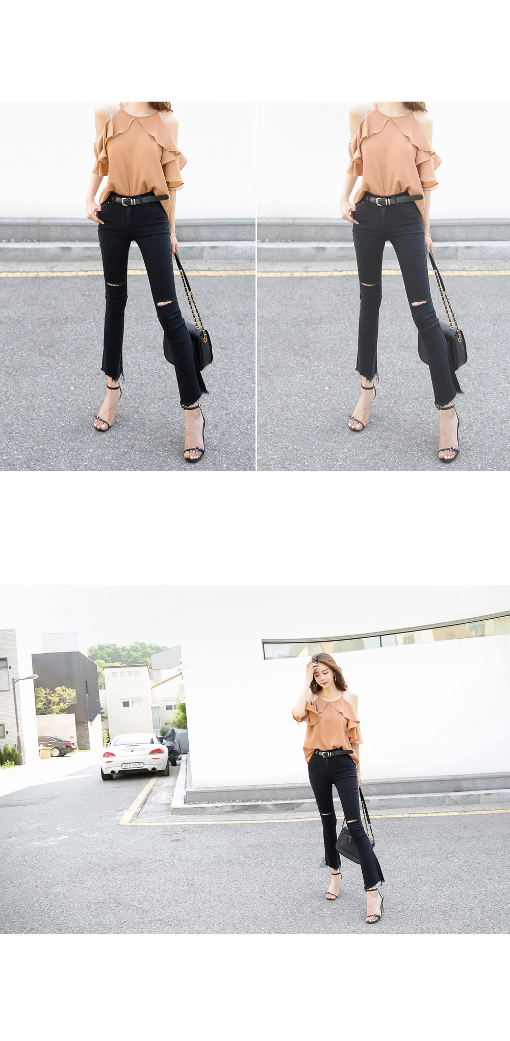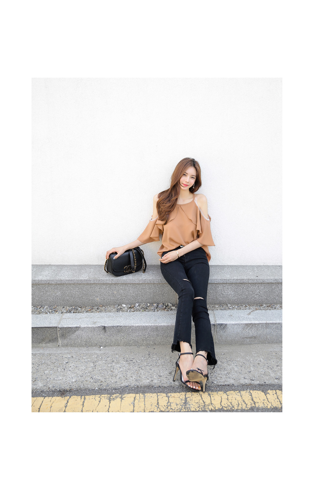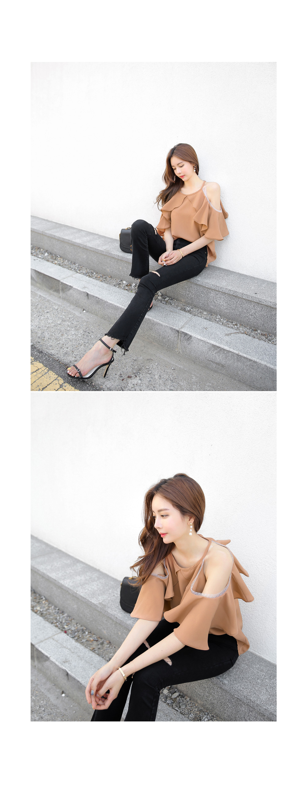 밑단 컷팅 디테일로 내추럴한 무드를 더했으며