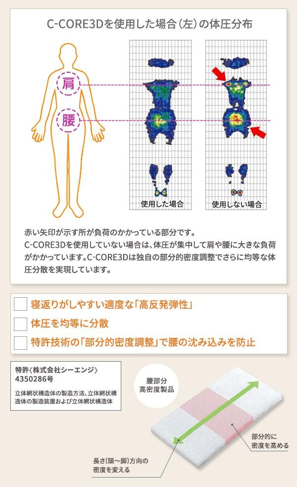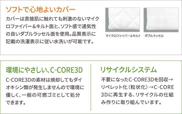 | 反発力に優れたC-CORE3Dを中材に使用したマットレス。 |