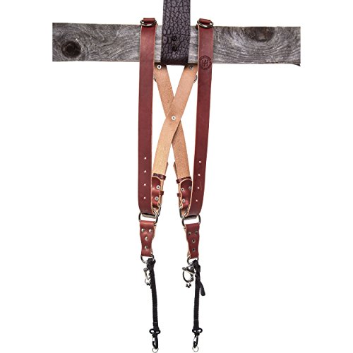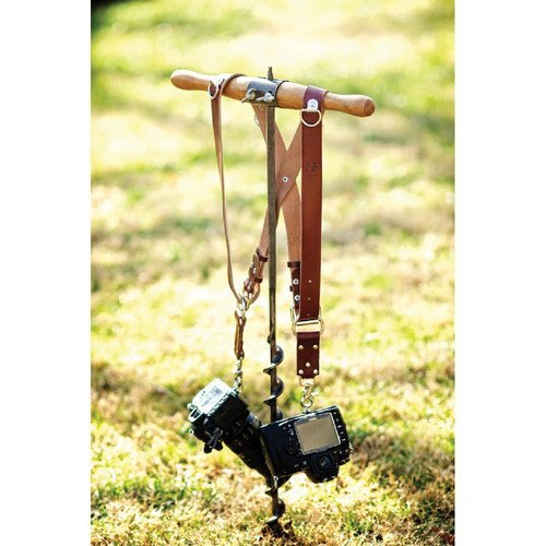 HoldFast Gear MoneyMaker Two-Camera Harness without D Rings on Shoulders, Bridle Leather, Medium, Chestnut