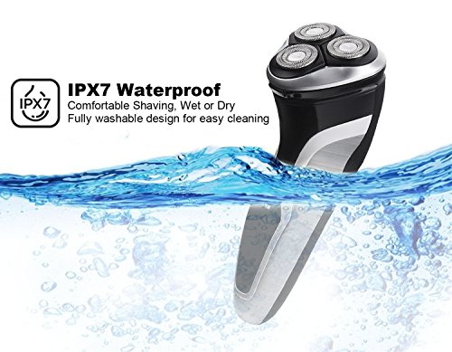 - IPX7 LEVEL 100% WATERPROOF: It can be safely rinsed under the faucet. When rinsing the shaver, water will flow away through the lower outlet. Cleaning by water does not present any danger because all electronic parts inside the shaver are protected. It allows you to use under moist or dry condition