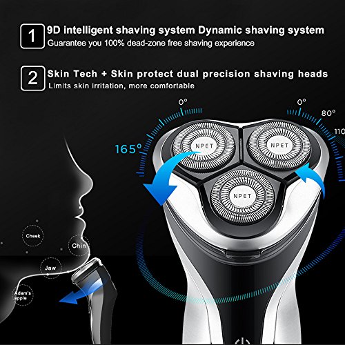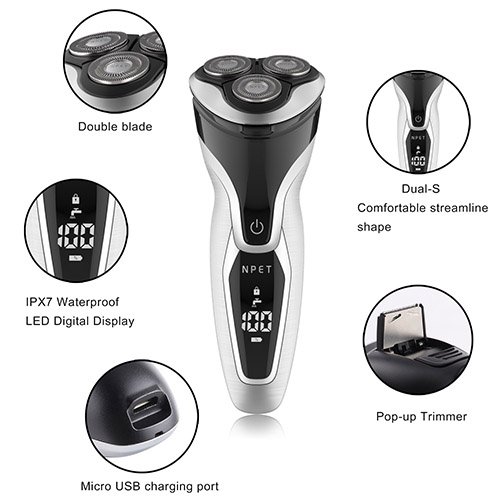 Electric Shaver Razor for Men 2 in 1 NPET ES8109 USB Quick Rechargeable Electric Razor, IPX7 Waterproof Wet & Dry Rotary Shavers with LED Display, Travel...