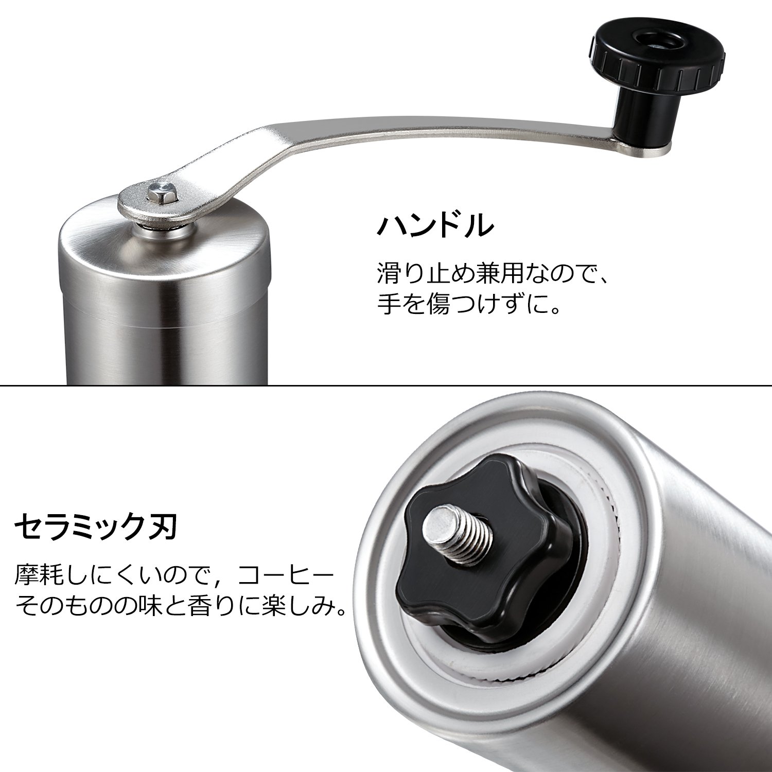 Because ceramic blades are used, frictional heat is less likely to occur and you can enjoy the flavor of the coffee itself.
